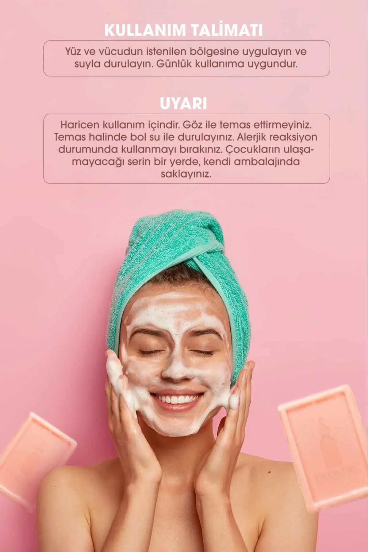 Uyarı: Haricen kullanım içindir. Oda sıcaklığından saklayınız. Çocukların ulaşamayacağı yerlerde saklayınız. Göz ile temasından kaçınız. Temas etmesi durumunda bol su ile nazikçe yıkayınız. Alerjik reaksiyon görülmesi halinde kullanmayınız. Oda sıcaklığında 25 °C altında, çocukların ulaşamıyacağı yerlerde ve kendi ambalajı içerisine saklayınız.